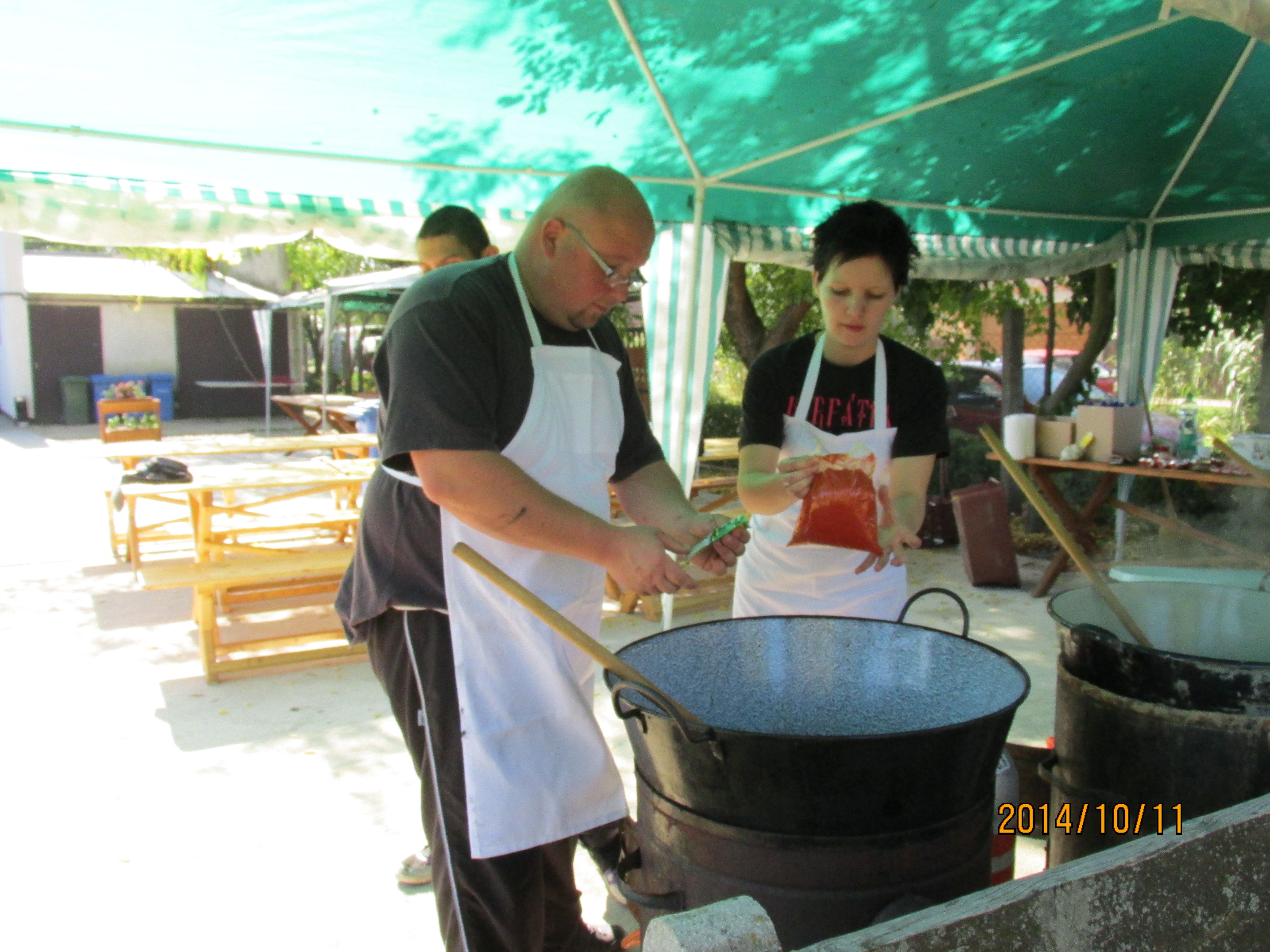 Mellette az üstökben fő hagyományos ízek szerint a birkapörkölt. A kisbíró kihirdeti a napi programokat, majd a déli órákban a felvonulás veszi kezdetét. A vendégek körében folyamatosan kínálják a szőlő mustot és a tavalyi bort.