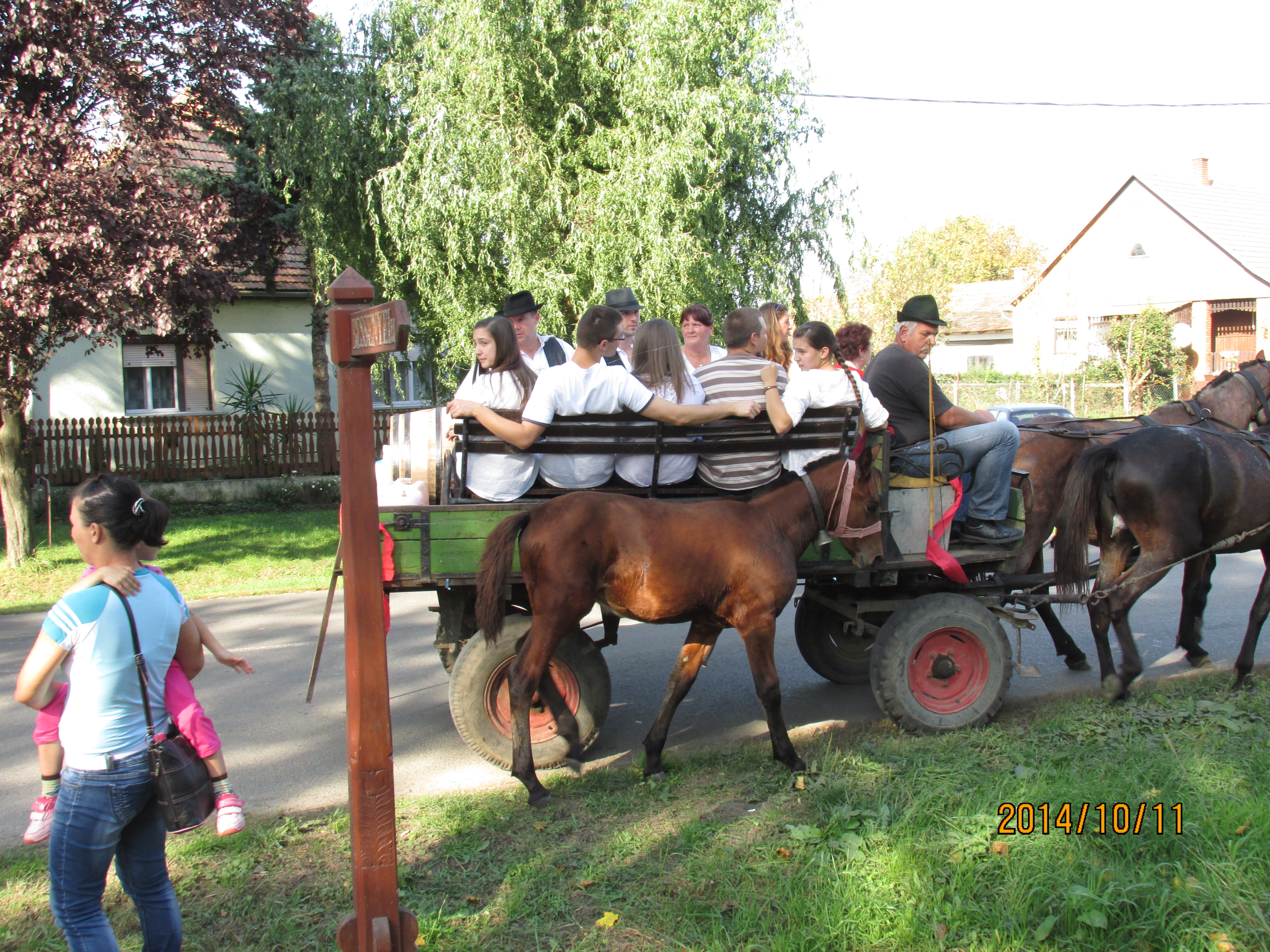A lovas szekerek elindulnak a fiatalabb és öregebb tehetségekkel, akik bemutatják tánctudásukat, amely nemzetiségi táncokból áll össze, de e mellett a helyi és környékbeli csikósok is részt vesznek akik csergetésükkel jelzik a falu számára, hogy megkezdődött a felvonulás.